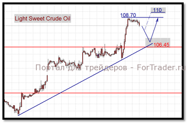 По нашим наблюдениям, главным катализатором к росту котировок “черного золота” послужила экономическая статистика по США и ЕС. В первой половине торговой сессии фьючерсы обозначили плавный рост благодаря позитивным данным по индикатору условий в деловой среде немецкого института IFO. Согласно опубликованной статистике за февраль, доверие в бизнес среде выросло с 108,3 до 109,6 пунктов. Последовавший после выхода показателя рост единой европейской валюты на рынке FOREX помог нефтяным котировкам сформировать промежуточный уровень сопротивления в областях 106,80$ Light и 124$ Brent, откуда часть игроков предпочла зафиксировать спекулятивную прибыль в виду технической перекупленности цен. Далее “бычью эстафету” поддержали новости из США. Рынок труда продолжает радовать инвесторов, фиксируя еженедельное сокращение количества первичных заявок за пособием по безработице. В этот раз, показатель Initial Jobless Claims стабилизировался на уровне 351 тыс., а число повторных обращений за отчетный период 11 февраля снизилось с 3444 тыс. до 3392 тыс. Весьма “ко двору” пришелся отчет по производственной активности от ФРС Канзас Сити, свидетельствовавший об увеличении индикатора до 13 пунктов против прогнозных 9-ти пунктов. На этом фоне, спекулянты не придали сильного значения росту коммерческих запасов сырой нефти в опубликованном докладе Минэнерго США. Согласно данным ведомства, в период с 11 по 17 февраля нефтехранилища пополнились на 1,6млн. баррелей, однако, сокращение запасов бензина на 650 тыс.баррелей оказалось более чем неожиданным, т.к. прогнозы отраслевых специалистов были направлены в сторону увеличения показателя. В результате, на фоне роста аппетита инвесторов к рискованным активам, фьючерсные контракты обозначили новый виток бычьего ралли, достигнув максимумов сессии на отметках 108,70$ Light и 124,50$ Brent.