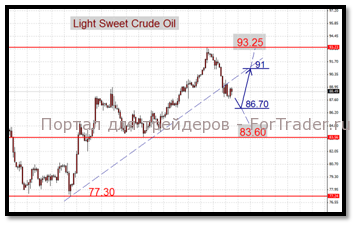 По нашим оценкам, текущее снижение котировок фьючерсов по направлению к области важной технической поддержки 83,60$ Light, 97,80$ Brent можно использовать для открытия длинных позиций в расчете на возврат цен к отметкам 91$ и 107$ соответственно. Ближайшей целью для промежуточного падения будут выступать области 86,70$ Light, 102,30$, откуда спекулянты вновь попытаются “разогнать” бычий импульс к намеченным ориентирам.