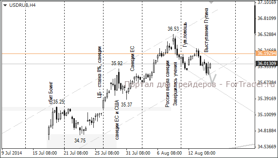 В настоящее время рублёвые пары торгуются в восходящих каналах. На пятницу можно снова рассматривать снижение доллара и евро до 35,65 и 47,60 соответственно.
