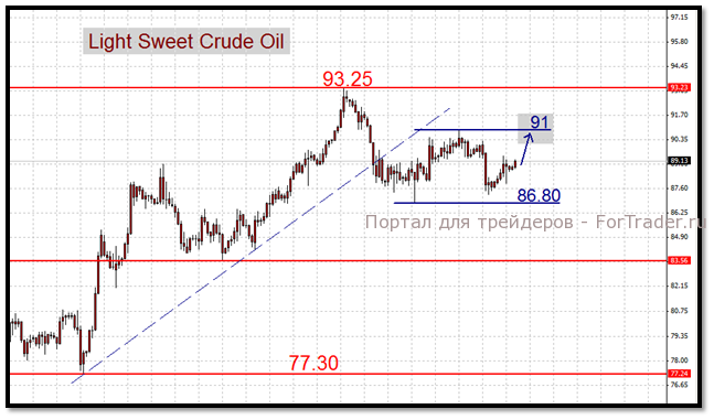 По нашим оценкам, новые доказательства ухудшения экономического климата США будут сдерживать рост нефтяных цен, поэтому позитивный эффект от заседания ЕЦБ может сойти на нет к концу рабочего дня. С технической точки зрения сформировавшийся в текущей ситуации коридор цен 86,80$-91$ Light, 104$-108,20$ Brent указывает на вероятность роста котировок к верхним границам. Прорыв выше отправит фьючерсы тестировать максимумы на отметках 93,25$ и 109,90$ соответственно.