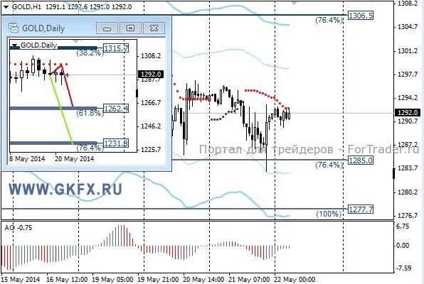 Цены на золото вновь вчера прощупали нижнюю границу диапазона 1287-1305,0. Напряжение нарастает и возможен выстрел, в какую-либо сторону. Я по-прежнему ожидаю выстрел вниз. На этот случай даю рекомендацию на продажу. Вчерашние проколы заседания ФРС ничего нового не показали, однако было отмечено постепенное восстановление экономики. Это говорит о том, что ФРС и дальше будет придерживаться плана. Для золота это больше негативно, но все это уже учтено в ценах. Традиционно делаю два варианта движения цены на неделю, основной красный и альтернативный зеленый. Значимые уровни на сегодня отмечены на часовом графике. Индикатор АО находится у нуля, указывая на неопределенность. Индикатор тренда указывает на снижение. Преодоление 1285,0 позволит продать с целями 1282,0, 1277,0 и 1270,0.