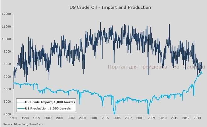 Однако интереснее другое: добыча сырой нефти внутри страны превысила объем импорта впервые за последние 16 лет, таким образом, добыча нетрадиционными методами, в частности, разработка сланцевых месторождений, сокращает зависимость Штатов от иностранной нефти. Потребность в импорте падает, меняя карту морских перевозок, выполняемых сверхбольшими нефтеналивными танкерами. Странам Западной Африки, которые добывают нефть марки light sweet, аналогичную по качеству нефти WTI, приходится теперь искать новых покупателей, в основном на Дальнем Востоке.