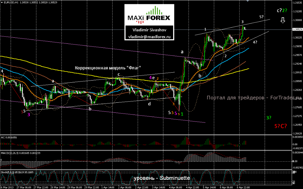 В нашем прогнозе на вторник, предполагаем – продолжение подъёма пары в границах восходящего треугольника, первоначально, к уровню 1.3068
