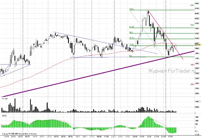 Тем не менее, я уже присмотрела акции, которые вполне могут занять достойное место в моем портфеле – это акции «Транснефти». Эти акции я планирую покупать частями от уровней 39000, 39500 и на пробое недавнего пика 40300 (обозначившего на часовых графиках пик между двумя доньями фигуры «неудавшийся размах»).