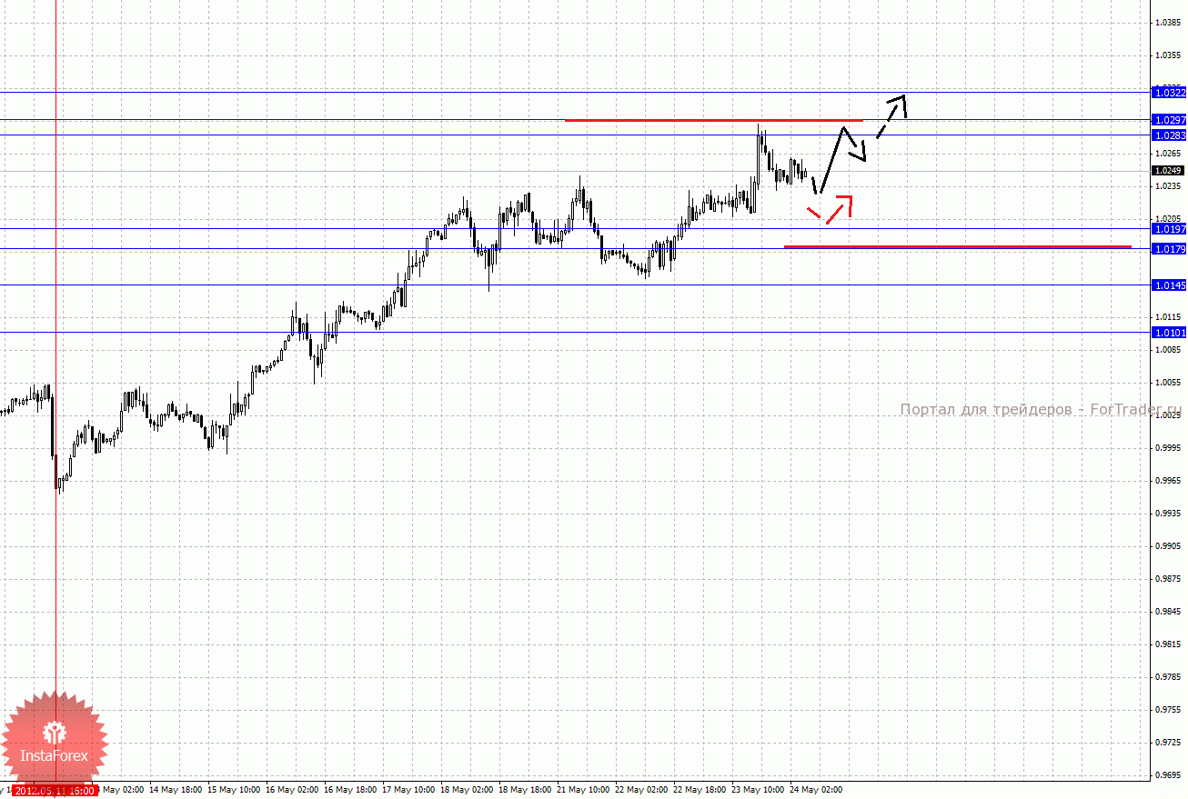 По паре Доллар/Франк ключевым уровня являются: 0.9651, 0.9631, 0.9594, 0.9575, 0.9491, 0.9446, 0.9430 и 0.9366. Здесь мы отталкиваемся от локальной восходящей структуры 21 мая. Краткосрочное восходящее движение ожидаем в коридоре 0.9575 – 0.9594, пробой последнего значения должен сопровождаться выраженным движением к уровню 0.9631. Потенциальным значением для верха считаем уровень 0.9651, по достижении которого ожидаем консолидированное движение в коридоре 0.9631 – 0.9651. Уровень 0.9491 является ключевой поддержкой для верха, его пробой будет сопровождаться краткосрочным нисходящим движением, что окажет негативное влияние на последующие развитие восходящей структуры в масштабе Н1, здесь потенциальная цель 0.9446. Проход ценой шумового диапазона 0.9446 – 0.9430 приведет к развитию нисходящей структуры, в данном случае мы ожидаем движение к уровню 0.9366.