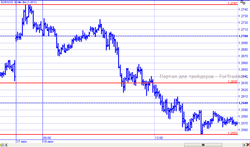 Пара начала новую неделю на оптимистичной ноте под влиянием итогов выборов в Греции. Открывшись в районе уровня 1,2700 цены подскочили до отметки 1,2747, но на этом весь позитив и закончился. В течение большей части торговых суток пара оставалась под давлением. В рамках нисходящего движения цены преодолели поддержку на 1,2630 и 1,2580, отметив локальный минимум на 1,2553. К завершению дня пара откатилась к уровню 1,2570.