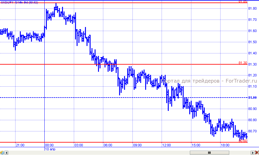 Пара доллар/иена во вторник сдавала позиции, что только лишний раз подтверждает, что на рынке царит неопределенность и инвесторы пока не могут определиться за чем будущее: евро или долларом (который находится под негативным влиянием данных по рынку труда). В течение торговых суток пара демонстрировала нисходящее движение в рамках которого преодолела поддержку 81,30 и 81,00. К завершению дня цены зафиксировались ниже уровня поддержки 80,70.