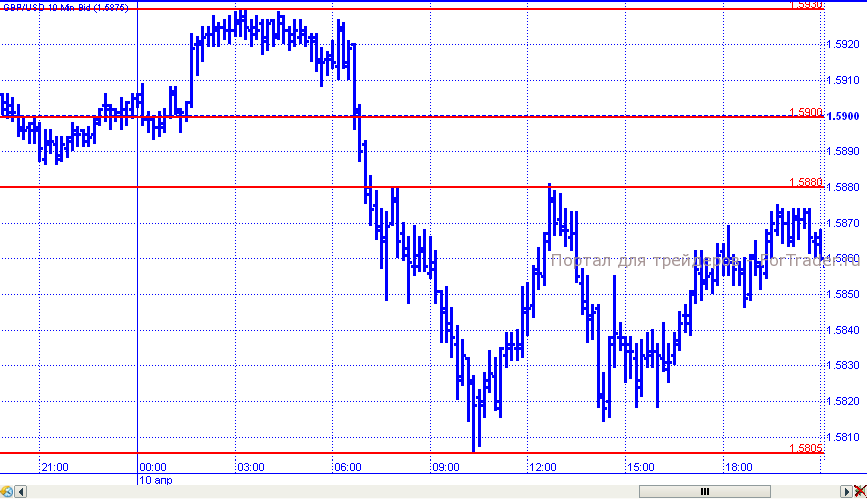 С потерями против доллара завершил вторник и фунт. После краткосрочного роста пара с легкостью преодолела поддержку 1,5900 и 1,5850, скатившись в рамках нисходящего движения к уровню 1,5805. Впоследствии цены откорректировали к отметке 1,5880, за чем последовала еще одна волна падения и волна роста. Торговые сутки пара завершила выше уровня 1,5850.
