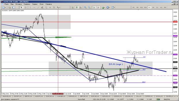 На период торгов в среду, 22 июня, индекс Dow Jones, вероятнее всего, готов снизиться в область уровней 11850-11925.