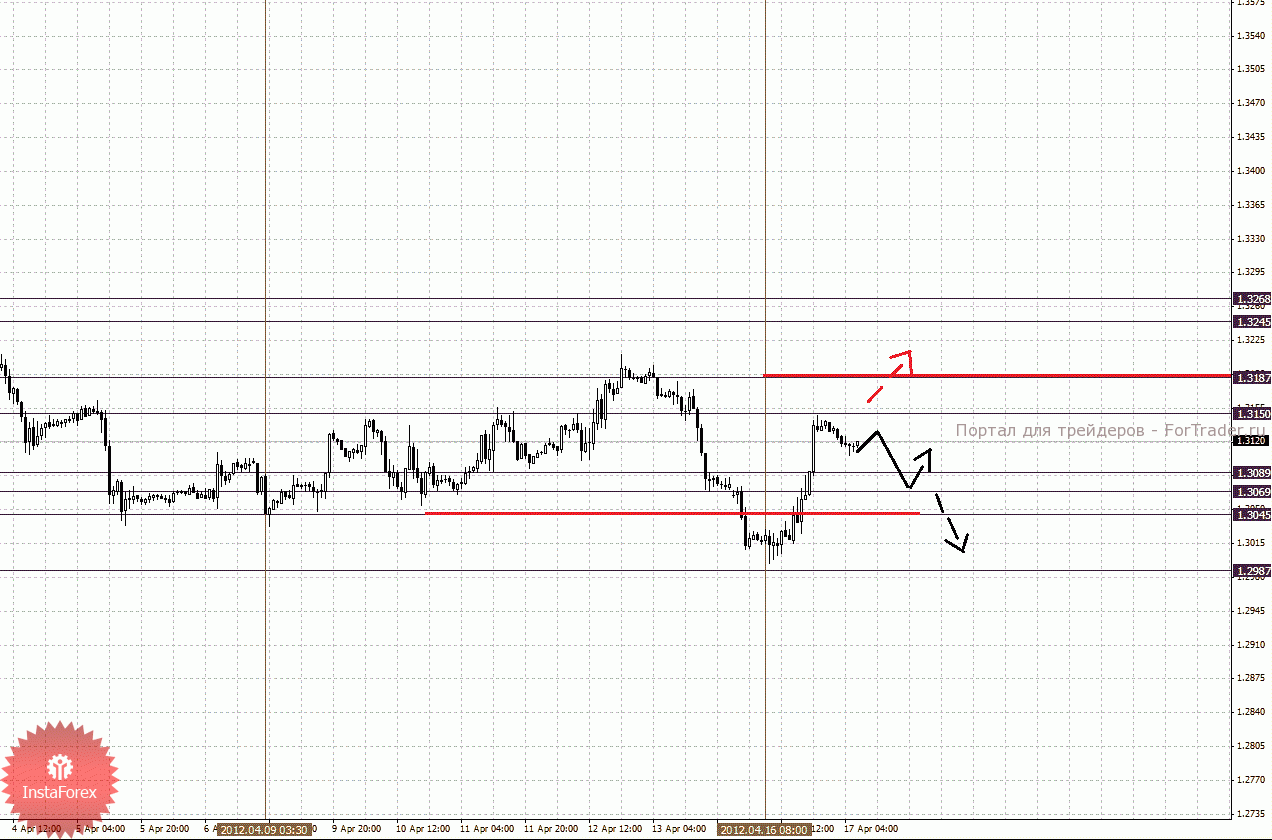 По паре Евро/Доллар важными уровнями являются: 1.3268, 1.3245, 1.3187, 1.3150, 1.3089, 1.3069, 1.3045 и 1.2987. Здесь цена пока не может войти в устойчивое русло, и на текущий момент мы следим за формированием восходящей структуры от 16 апреля. Краткосрочное движение кверху ожидаем в коридоре 1.3150 – 1.3187, пробой последнего значения должен сопровождаться импульсивным движением к уровню 1.3245, по достижении которого, ожидаем консолидацию в коридоре 1.3245 – 1.3268. Корректировочное нисходящее движение ожидаем в коридоре 1.3089 – 1.3069, пробой последнего значения приведет к углубленной коррекции, здесь цель 1.3045, от этого уровня высока вероятность разворота кверху, его пробой приведет к отмене восходящей структуры от 16 апреля, в данном случае первая цель 1.2987.
