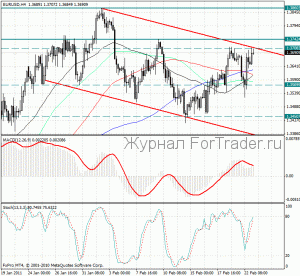 Гистограмма MACD расположена в положительной зоне, в данный момент пытается пересечь свою сигнальную линию снизу вверх и тем самым сформировать сигнал на покупку EUR/USD.