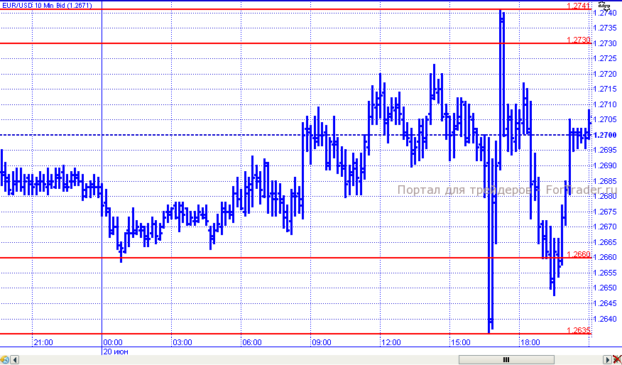 Динамика пары лишний раз подтверждает нервозность, царящую на рынке. Цены демонстрируют разнонаправленные колебания. В среду пара в начале торговых суток попыталась преодолеть поддержку 1,2660, но неудачно. Оттолкнувшись от указанной отметки пара начала движение к сопротивлению 1,2700 и, далее, к 1,2730. Но после объявления решения ФРС резко обвалился к 1,2635 и столько резко подскочил к 1,2741. Но удержаться на достигнутых высотах паре не удалось. День евро/доллар завершил с районе сопротивления 1,2700.