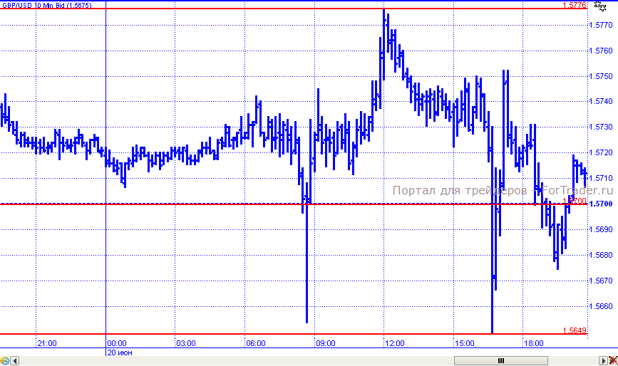 В среду из стороны в сторону поносило и пару фунт/доллар. Начав торговые сутки в пределах узкого диапазона после публикации Протокола заседания МРС цены обвалились к уровню 1,5650, но довольно быстро восстановили потери и протестировали сопротивление 1,5770. Но продолжить рост не смогли и начали отдавать заработанное. На американской сессии цены еще раз упали к уровню 1,5650, но дань завершили все же чуть выше уровня 1,5700.