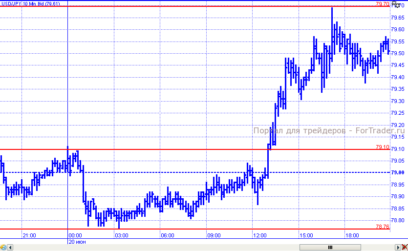 Торговые сутки в среду пара доллар/иена начала сдержанно, в пределах диапазона 78,75 – 79.10. Но на американской сессии смогла преодолеть его верхнюю границу и продолжила подъем, отметив внутридневной максимум на уровне 79,70. Но к завершению дня пара откатилась к отметке 79,50.