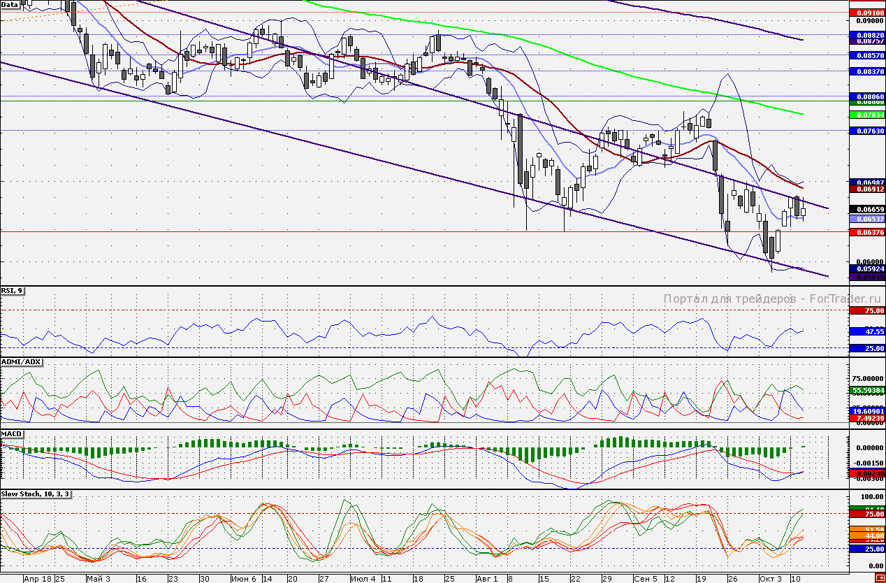 Акции ВТБ накануне удержали 10-дневную скользящую среднюю – 6,537 коп., от данной отметки акции привлекательны для покупок. Сопротивлением является 6,8 коп., от данной отметки «лонги» стоит закрывать.
