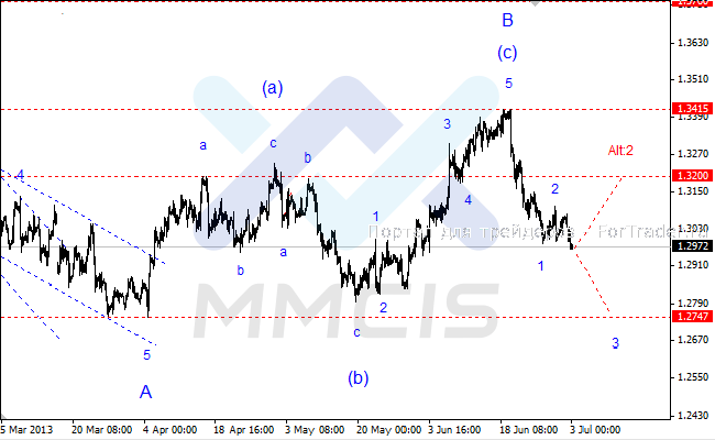 В приоритете по-прежнему остается нисходящее движение пары в направлении 28-й фигуры в рамках волны «3» нисходящего импульса старшего порядка. В то же время альтернативный сценарий предполагает укрепление пары в район 32-й фигуры в рамках усложненной структуры волны «Alt:2».