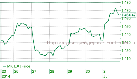 Первый день лета начался с роста. Индекс ММВБ протестировал сопротивление на отметке 1470 п. Большинство бумаг закрылось ростом, лидерами стали акции Русгидро (HYDR:RX 0,7230 5,38%) и Сургутнефтегаза (SNGS:RX 26,351 5,03%). Снизились по итогам дня обыкновенные акции Мечела (MTLR:RX 46,30 2,53%). Однако в целом объемы торгов были ниже среднего, что говорит о консолидации рынка. На валютных торгах рубль продемонстрировал боковую динамику, курс доллара составил 34,90, евро – 47,45.