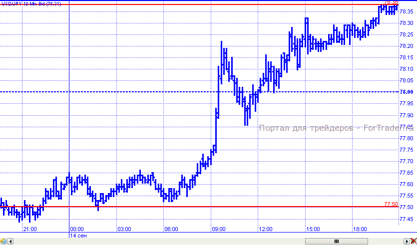 Пара доллар/иена в пятницу пала жертвой роста спроса на рискованные активы, к которым японская валюта явно не относится. Цены от уровне 77,50 начали рост, довольно легко преодолели сопротивление 78,00 и к завершению торговой недели подобрались к отметке 78,40. Отчасти это обусловлено тем, что на рынке сохраняются опасения, что рост иены вызовет вмешательство Банка Японии.