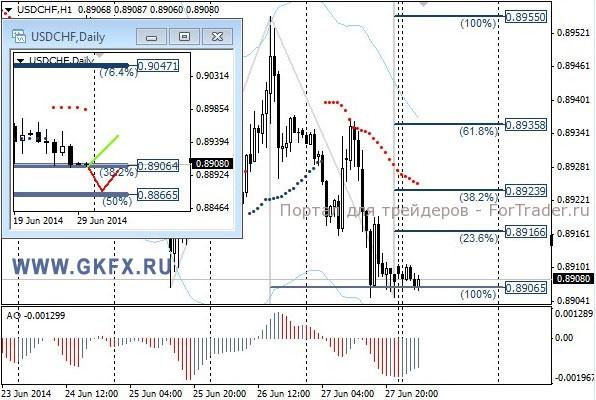 Пара USDCHF исполнила сделку по рекомендации на продажу по 0,8920, и дальнейшая судьба сделки зависела от стопа, который рекомендовалось установить выше уровня 0,8930. Если стоп был установлен на 0,8938/40, то первая цель была достигнута, и стоп можно было перевести в безубыток, в итоге он и сработал. Если стоп был установлен ниже, то по сделке небольшой минус. На эту неделю традиционно рассматриваю два варианта возможного движения цены, основной красный и альтернативный зеленый. Значимые уровни на сегодня отмечены на часовом графике. Индикатор АО находится в отрицательной зоне и растет, указывая на коррекцию перед возможным продолжением снижения. Индикатор тренда указывает на снижение. Вне рынка.