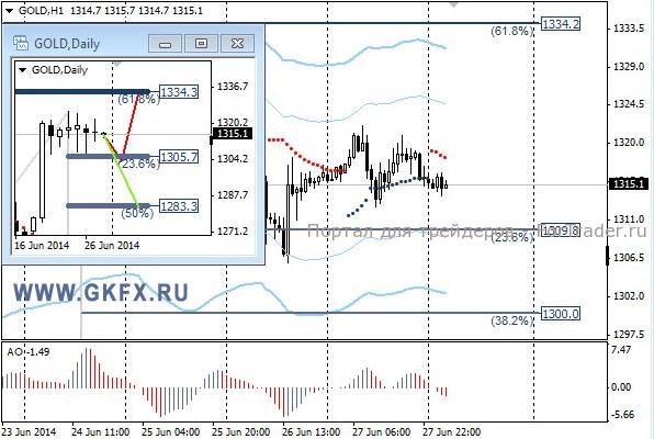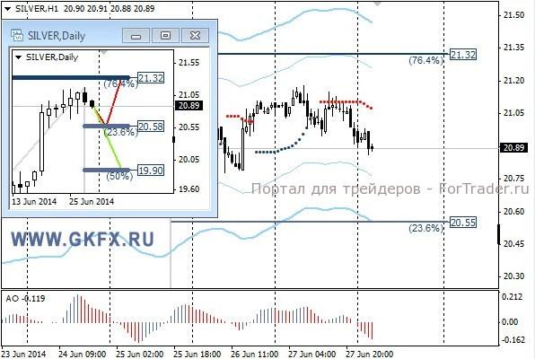Цены на золото продолжили торговлю в боковом движении в соответствии с ожиданиями. Новая неделя обещает быть активной и короткой из-за праздника в пятницу в США. По этой причине данные по новым рабочим местам в США перенесены на четверг. Четверг обещает быть очень волатильным, так как будет представлено много важной статистики. Драгметаллы находятся в боковике и возможно на этой неделе они вырвутся из диапазонов. Традиционно делаю два варианта движения цены на неделю, основной красный и альтернативный зеленый. Значимые уровни на сегодня отмечены на часовом графике. Индикатор АО находится в отрицательной зоне и снижается, указывая на желание инструмента двигаться вниз в данное время. Индикатор тренда указывает на снижение. Сегодня наблюдаем за желанием рынка.