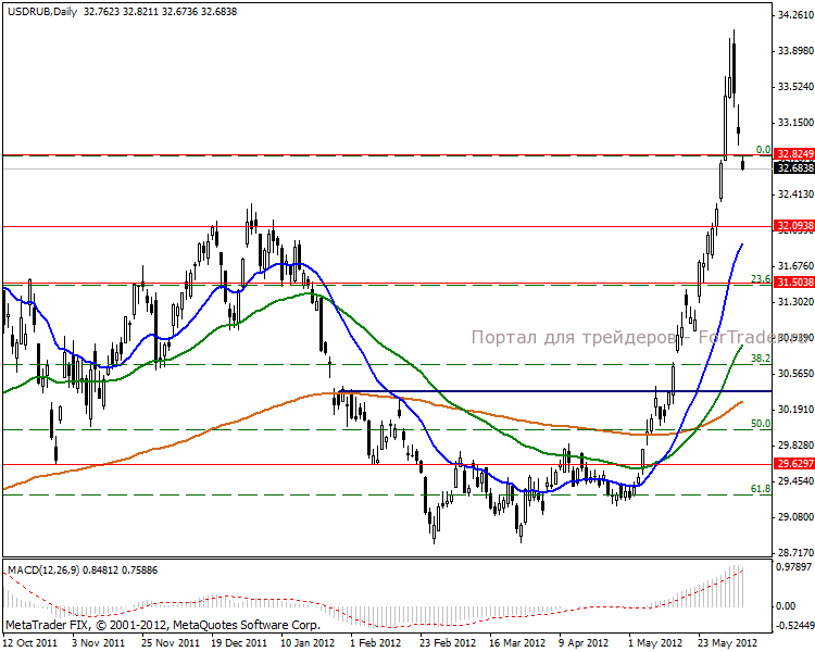 Пара usd/rub на сегодня возвращается в диапазон 32.02-32.82 пункта. Стоило бы отметить, что позиции ЦБ РФ, которые поддерживали снижение рубля объясняются довольно просто. В первую очередь доходы от нефти уменьшаются, следовательно, эту пустоту бюджета необходимо заполнить, а слабый рубль тут пришелся как нельзя кстати. Майская девальвация рубля в полной мере устраивала власти.