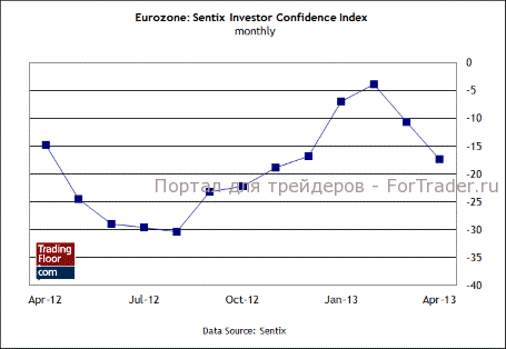 Согласно опубликованному Еврокомиссией на прошлой неделе индикатору экономических настроений, общий уровень доверия в еврозоне в апреле опустился до минимальной отметки в этом году. Сегодняшний отчет от Sentix предоставит дополнительные данные, которые помогут ответить на вопрос, удается ли в Европе поддерживать доверие среди инвесторов или нет.