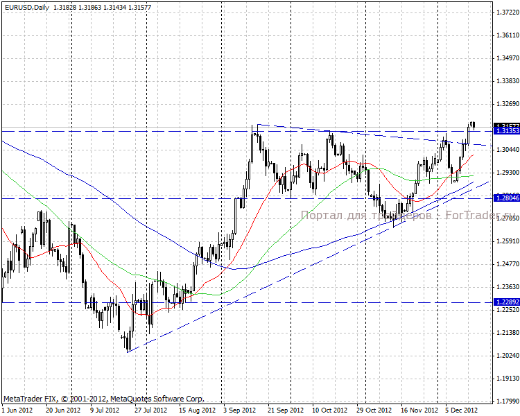 В пятницу, 14 декабря, единая европейская валюта на закрытии торгового дня смогла закрепиться над уровнем 1,3150, что означает пробой диапазона сильного сопротивления. Отсутствие большого количества плохих новостей с европейского региона и постепенное снижение основных американских фондовых индексов, привело к усилению покупок EUR.