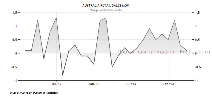 Австралийский доллар торговался с небольшим понижением на фоне слабых данных по розничным продажам в Австралии. Розничные продажи упали в марте на 0,1% м/м, против ожиданий роста на 0,4%, что оказалось минимальными темпами роста за девять месяцев. В 1-м квартале розничные продажи выросли на 1,2% кв/кв, тогда как ожидался рост на 1,6%.