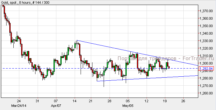 Золото подорожало на 0.02% и составило $1,293 за унцию, так как американские индексы завершили торговый день повышением. Согласно техническому анализу 8-часового графика, котировки золота сформировали фигуру «треугольник». Прорыв нижней стороны «треугольника» может вызвать падение золота к уровню $1,280, однако, при прорыве верхней стороны драгоценный металл вырастет к отметке $1,310.