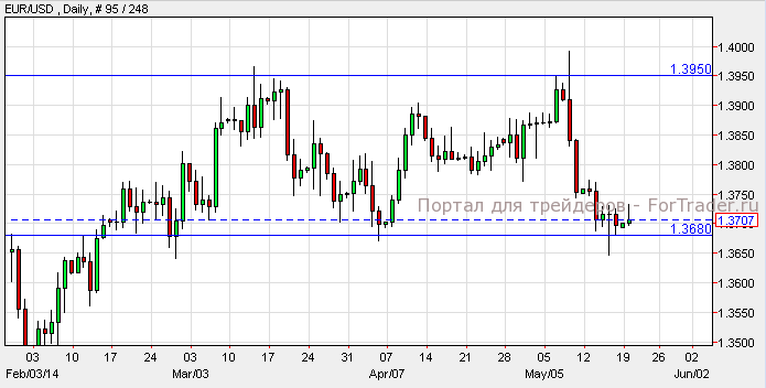 Евро вырос против доллара и закрылся на отметке 1.3706, в связи с отсутствием важных экономических новостей. Согласно техническому анализу дневного графика, пара EUR/USD торгуется выше уровня поддержки 1.3680. Прорыв ниже уровня поддержки может привести пару к отметке 1.3600, в противном случае цена протестирует следующий уровень сопротивления 1.3950.