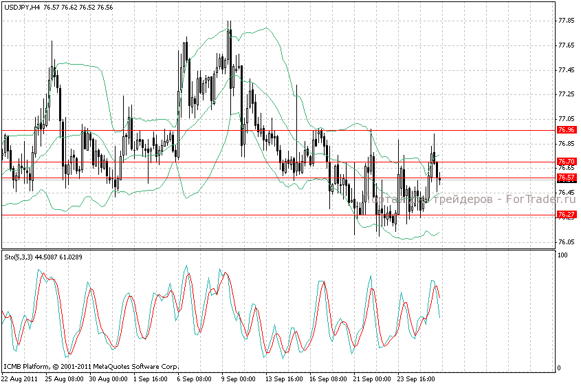 Поддержка находится в районе 76,20, куда пара будет снижаться в ближайшие торговые сессии. Область сопротивления находится в 77,00. Вероятно, в ближайшее время мы увидим отскок вверх от области поддержки, в конце недели спрос на USD может усилиться.