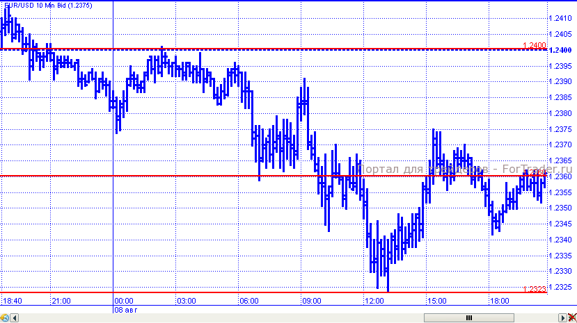 Евро/доллар постепенно теряет позиции. Торговые сутки пара начала с очередной попытки закрепиться выше уровня сопротивления 1,2400, но пройти этот барьер цены так и не смогли. В результате пара скатилась к поддержке 1,2360 и продолжила падение, в рамках которого достигла внутридневного минимума на уровне 1,2323. Но к завершению дня цены совершили возвратный ход и закрылись в районе уровня 1,2360.