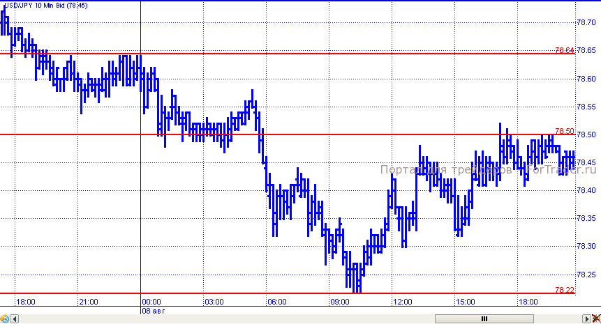 Как и предполагалось, пара доллар/иена демонстрировала сдержанные движения. В первой половине торговых суток в среду цены устремились вниз и достигли отметки 78,22, от которой впоследствии начали подъем и вернулись к сопротивлению 78,50, в районе которого и завершили день.