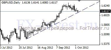 Фунт/доллар продолжает дрейфовать вниз по графикам и сегодня даже протестировал 44-дневную линию тренда/поддержки с началом от минимума 2 августа, отмеченную на графиках вблизи 1.6089, когда как промежуточный дневной минимум среды установлен рядом с 1.6063, а на момент написания комментария пара торгуется около 1.6119. Сегодня вышел релиз по индексу PMI, результаты которого оказались не в пользу британской валюты, так как в месячном исчислении значение индекса в сентябре сократилось до 52.2 от 53.7 в октябре против прогноза аналитиков 53.00.