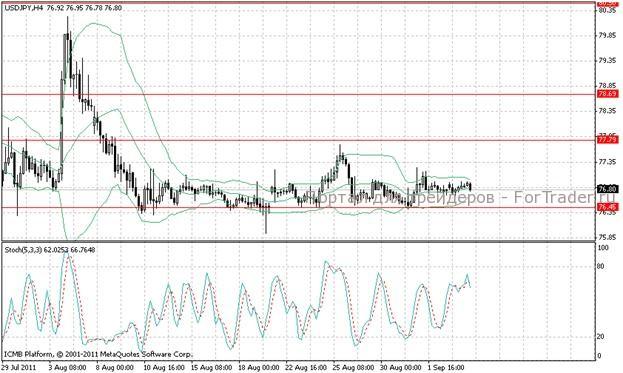 Валютная пара находится в узком коридоре, ощущается неделание участников торгов формировать новый тренд. Однако в низшей области канала, в районе 76,00 увеличивается концентрация ордеров на покупку, соответственно, желательно рассматривать покупки от области поддержки.