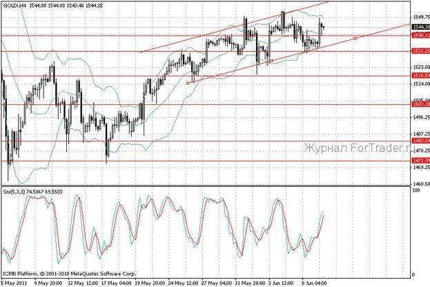 С 26 мая золото находится в явном краткосрочном восходящем канале. Можно предположить, что цель – обновление максимумов, но движение к вершине будет проходить с несколькими откатами вниз. В пятницу будет тестироваться отметка 1540 долл. за тройскую унцию. Если тест будет пройден успешно, то уже на следующей неделе может состояться рывок к уровню 1560. Пока же желательно проявлять умеренный консерватизм и рассматривать покупки от 1531-1532.