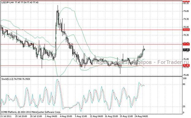Из области 76,45 идет достаточно быстрое восхождение валютной пары. Инвесторы нуждаются в американском долларе, чтобы перед началом осени успеть приобрести рисковые активы по достаточно низкой цене. Короткие позиции по паре отложенными ордерами стоят в 78,00, таким образом, к концу сессии пятницы на рынке могут преобладать продажи.