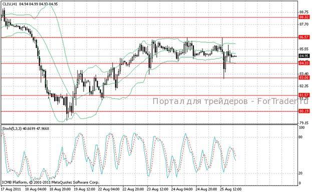 Нефть снизилась ниже области 85,00, технические факторы указывают на вероятность падения ниже 84,00 в район 82,00. На фоне снижения напряженности в геополитике можно предположить, что игроки будут выводить на рынок свободные и неиспользованные резервы нефти. Можно рассматривать возможность покупки от 82,00-82,40.