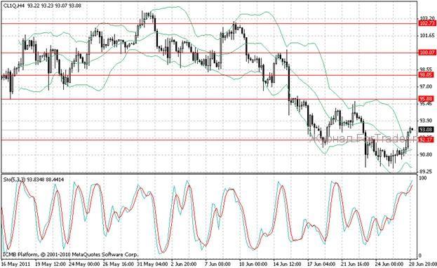 Нефть пытается восстановиться и на торгах в Азии в среду на фоне роста мировых фондовых индексов и сырьевых валют. Тем не менее, среднесрочный тренд по-прежнему остается нисходящим, а сопротивление по паре находится в области 95,00-95,88. В такой ситуации инвесторы могут играть на понижение от ключевых уровней, например, совершать продажи от 95,00, где находится опционный уровень, а выше стоят ордера на продажу инструмента.
