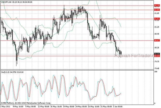После понижения рейтинга экономики Японии со стороны одного из ключевых рейтинговых агентств Азии, инвесторы стали активно продавать валютную пару. Продажам способствует и общая смена настроений на фондовом рынке Азии. В области 79,8-80,00 проходит область поддержки, но серьезный разворот вниз и по другим инструментам поддержит укрепление иены. Стоит рассматривать возможность покупки пары при уверенном отскоке от отметки 80,00, а восстановиться валютная пара способна к 80,67.