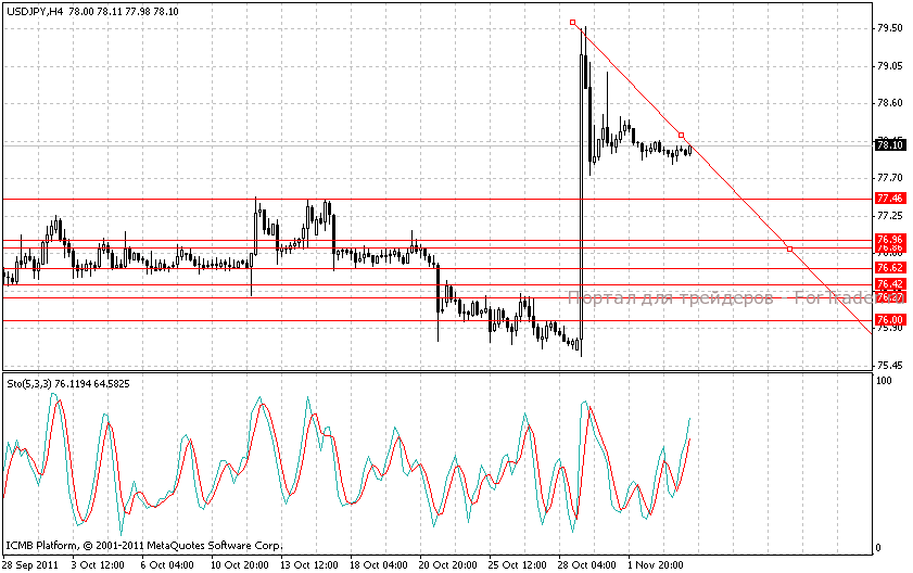 Премьер Министр Греции заявил, что референдум в стране может быть отменен, оппозиция готова принять меры финансовой поддержки, необходимо формировать переходное правительство Руководитель ЕЦБ сообщил, что допускает риски мягкой рецессии EC в конце года. Новость о снижении ставки рефинансирования ЕЦБ до 1,25% будет оказывать давление на пару еще на протяжении нескольких торговых сессий.