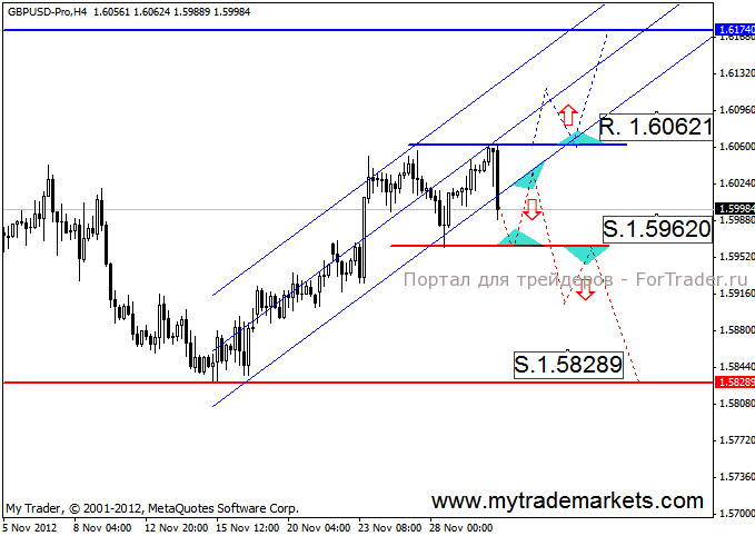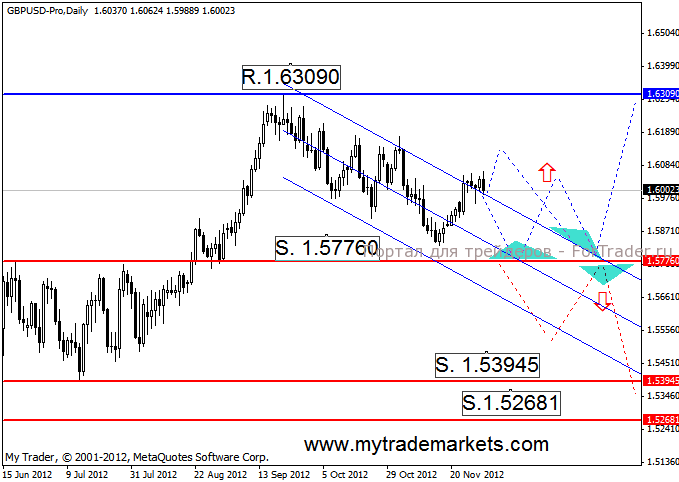2. Восходящий тренд. Входим на отскоке от нижней границы канала или после пробития максимума 1.60621 на коррекции.