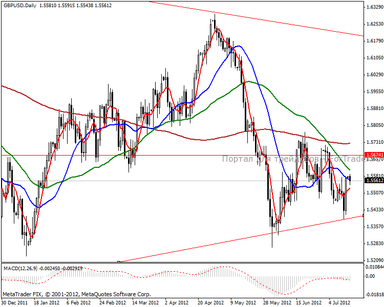 На дневном графике отскочили от нижней границы сужающейся формации, идем в направлении 1.6187 пунктов. Взятие среднесрочной цели ожидаем на начало августа текущего года.