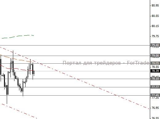 Пара USD/JPY ограничена сопротивлениями вблизи 78.70, 79.00 и 79.40, а также поддержками 78.10, 77.77 и 77.45.