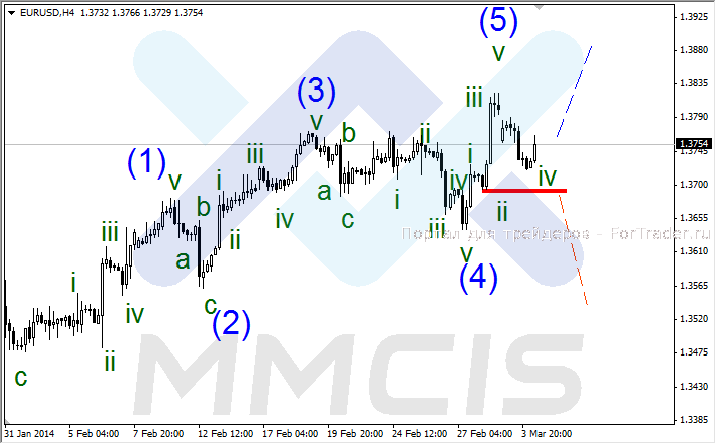 В качестве основного сценария рассматривается краткосрочный рост пары в направлении уровня 1.3900 в рамках окончания волны «5». В качестве альтернативного сценария рассматривается падение котировок до отметки 1.3560. Для подтверждения данного сигнала необходимо дождаться пробоя уровня поддержки 1.3700.
