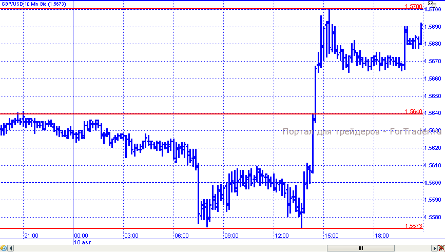 Фунт завершил последний рабочий день недели в плюсе по отношению к доллару. Но при этом торговые сутки начал падением. Цены смогли преодолеть поддержку 1,5600 и продолжили падение, отметив внутридневной минимум на уровне 1,5573, от которого довольно резко подскочили вверх и протестировали сопротивление 1,5700, которое и сдержало развитие восходящего движение. Оставшуюся часть дня пара провела в диапазоне 1,5660 – 1,5690.