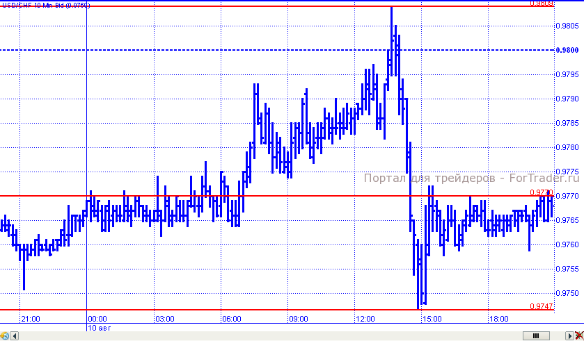 Доллар/франк в пятницу в начале торговых суток смогла закрепиться выше уровня 0,9770. Попытались цены пройти и сопротивление 0,9800, но неудачно. Пара отметила максимум на 0,9809 и сразу же начала падение, в рамках которого достигла уровня 0,9747. Но к завершению дня цены снова вернулись к сопротивлению 0,9770.