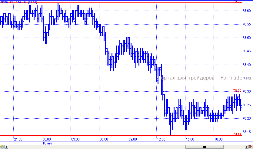 Динамика пары доллар/иена в пятницу традиционно не отличалась активностью. Стоит отметить, что цены демонстрировали тенденцию к умеренному ослаблению доллара. От уровня 78,63, к которому цены поднялись в самом начале торговых суток пара устремилась вниз, преодолела поддержку 78,30 и продолжила падение, в рамках которого достигла внутридневного минимума на 78,14. Но к закрытию недели снова вернулась к 78,30.
