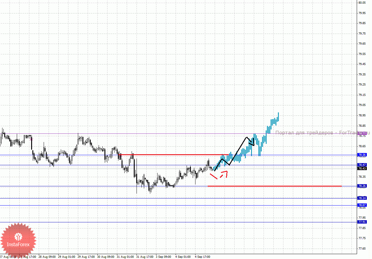 По паре Доллар/Иена ключевыми уровнями являются: 78.77, 78.56, 78.47, 78.26, 78.14, 78.07 и 77.91. Здесь, краткосрочное восходящее движение ожидаем в коридоре 78.47 – 78.56, пробой последнего значения должен сопровождаться выраженным восходящим движением, в данном случае потенциальная цель – 78.77, по достижении этого уровня ожидаем консолидированное движение. Продолжение движения книзу ожидаем после пробоя 78.26, в данном случае первая цель 78.14, в коридоре 78.14 – 78.07 консолидация цены. Потенциальным значением для нисходящего движения по-прежнему считаем уровень 77.91, по достижении которого ожидаем откат кверху.
