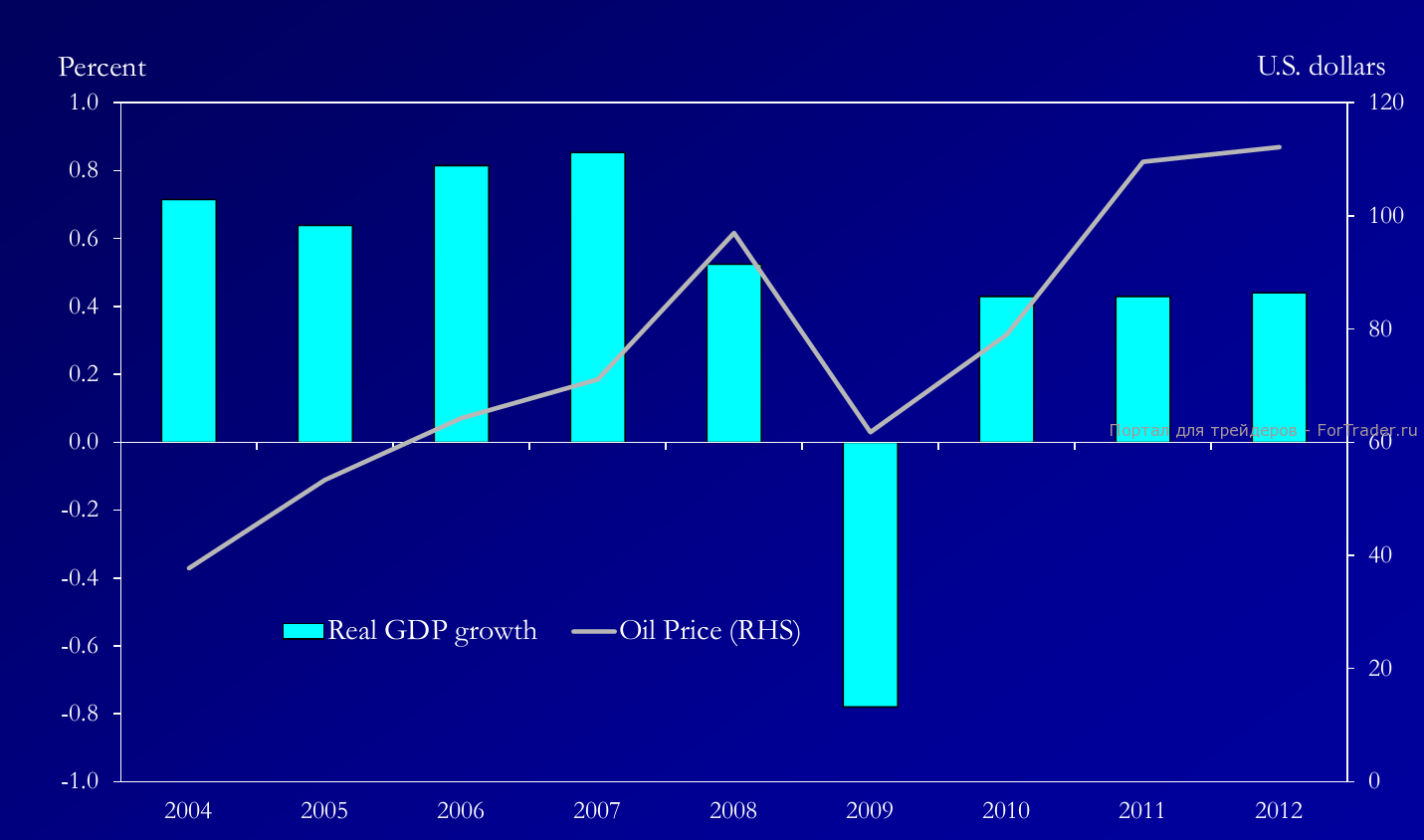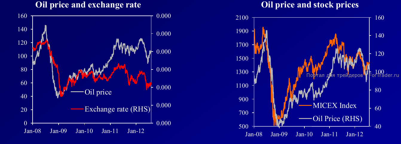 — Колебания мировых цен на нефть оказывают прямое и достаточно заметное воздействие на российскую экономику. Но, действительно, в течение последних двух-трех лет Банк России постепенно увеличивал гибкость курса рубля. Мы поддерживаем эту политику, поскольку она позволяет валютному курсу играть роль амортизатора, если цены на нефть идут вверх или вниз. Собственно, мы уже наблюдаем тенденцию к снижению зависимости российской экономики от колебаний мировых цен на нефть, в значительной мере, именно благодаря более гибкому обменному курсу.